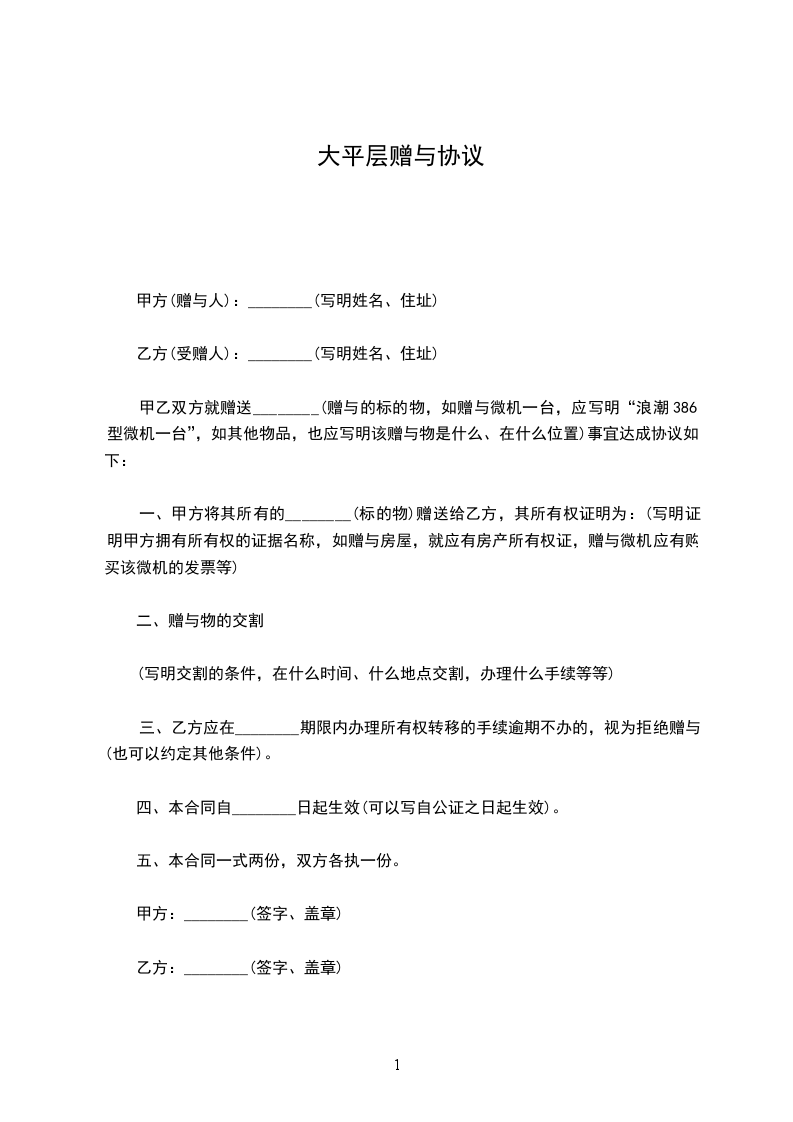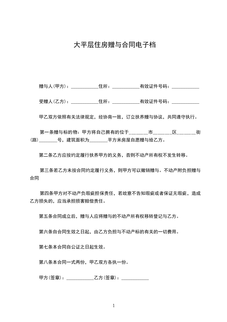 XXX(受赠人姓名):赠与其坐落于_________市_________区_________街_________弄_________号_________楼公寓房一套。房产权证号:_________。