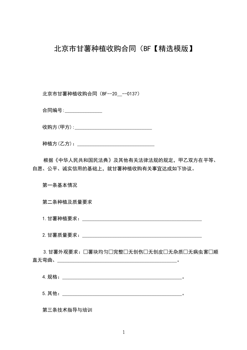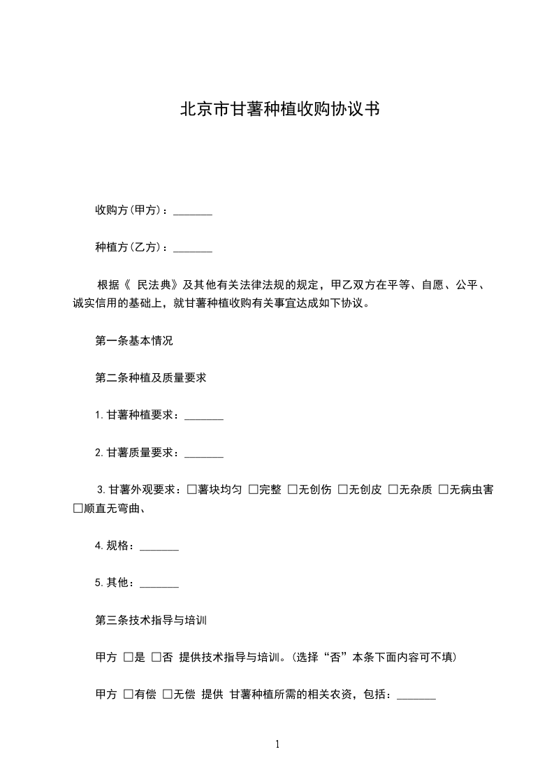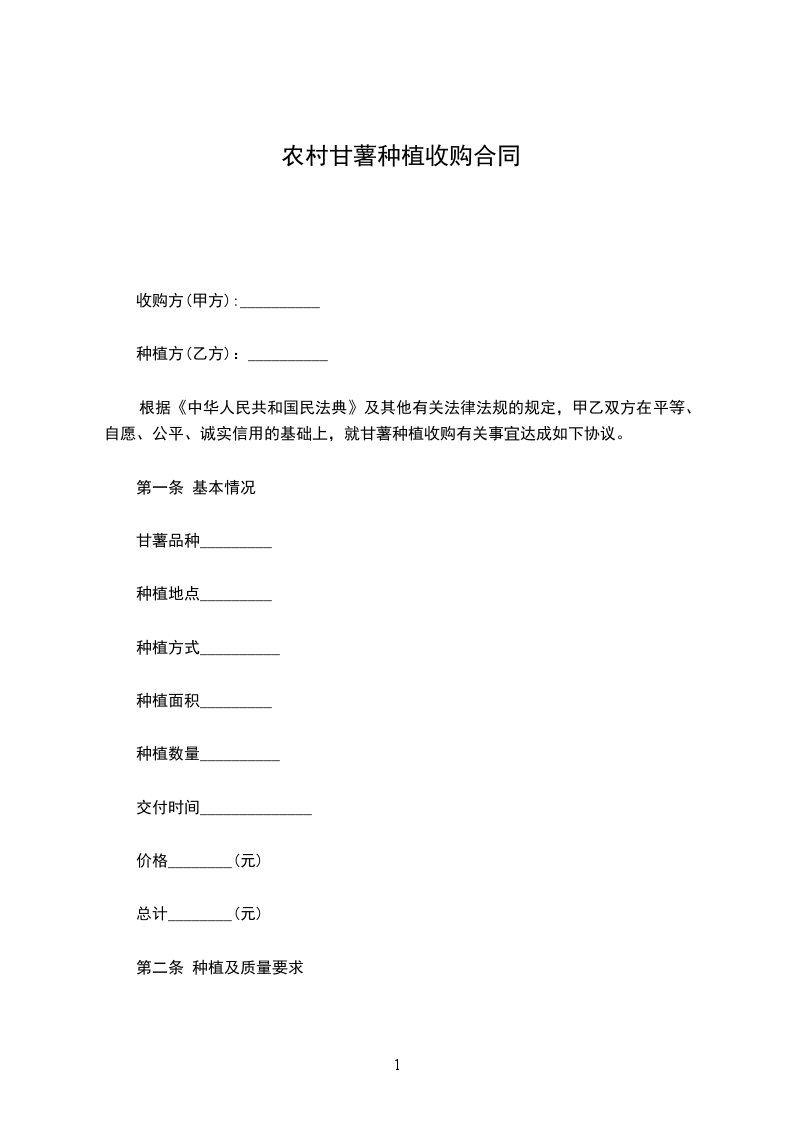 根据《_____》及其他有关法律法规的规定,甲乙双方在平等、自愿、公平、诚实信用的基础上,就甘薯种植收购有关事宜达成如下协议。