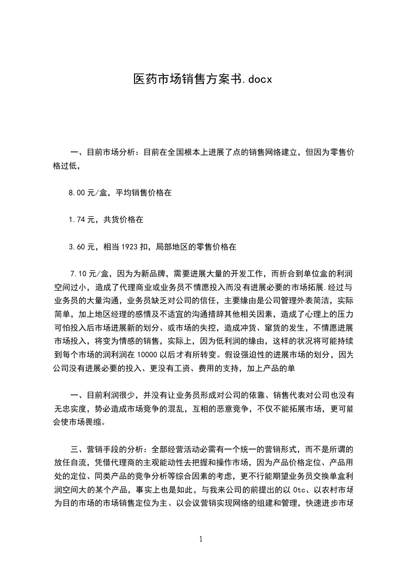 一、目前市场分析:目前在全国根本上进展了点的销售网络建立,但因为零售价格过低,