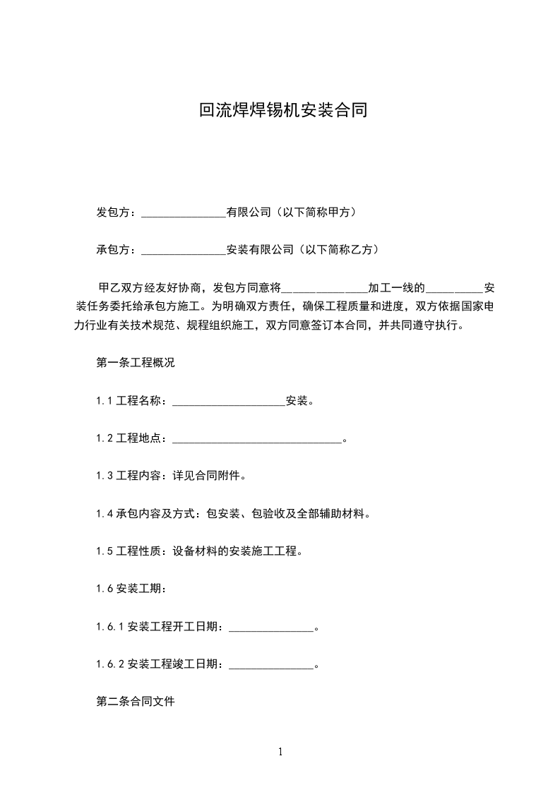 经甲、乙双方友好协商,甲方选择乙方作为____________________设备的安装方,现就________设备安装有关事宜签定合同,以资信守。