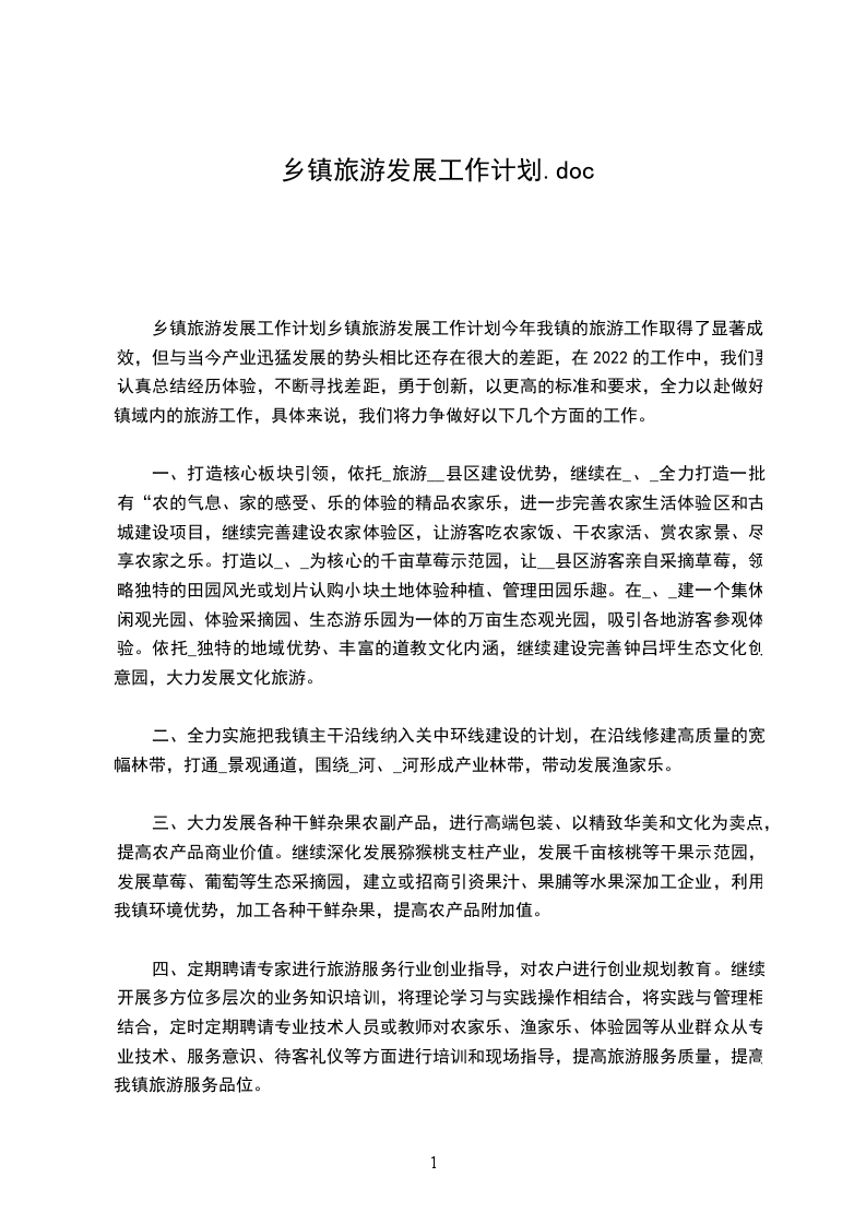 乡镇旅游发展工作计划乡镇旅游发展工作计划今年我镇的旅游工作取得了显著成效,但与当今产业迅猛发展的势头相比还存在很大的差距,在2024的工作中,我们要认真总结经历体验,不断寻找差距,勇于创新,以更高的标准和要求,全力以赴做好镇域内的旅游工作,具体来说,我们将力争做好以下几个方面的工作。