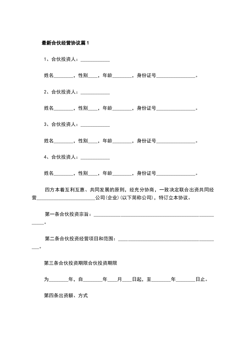 2.退伙:合伙经营期间,除经双方协商一致,否则任何一方不得提出解除该协议,未经对方同意而自行退伙,则需向另一方支付违约金______________元,如给合伙造成损失的,应进行赔偿。