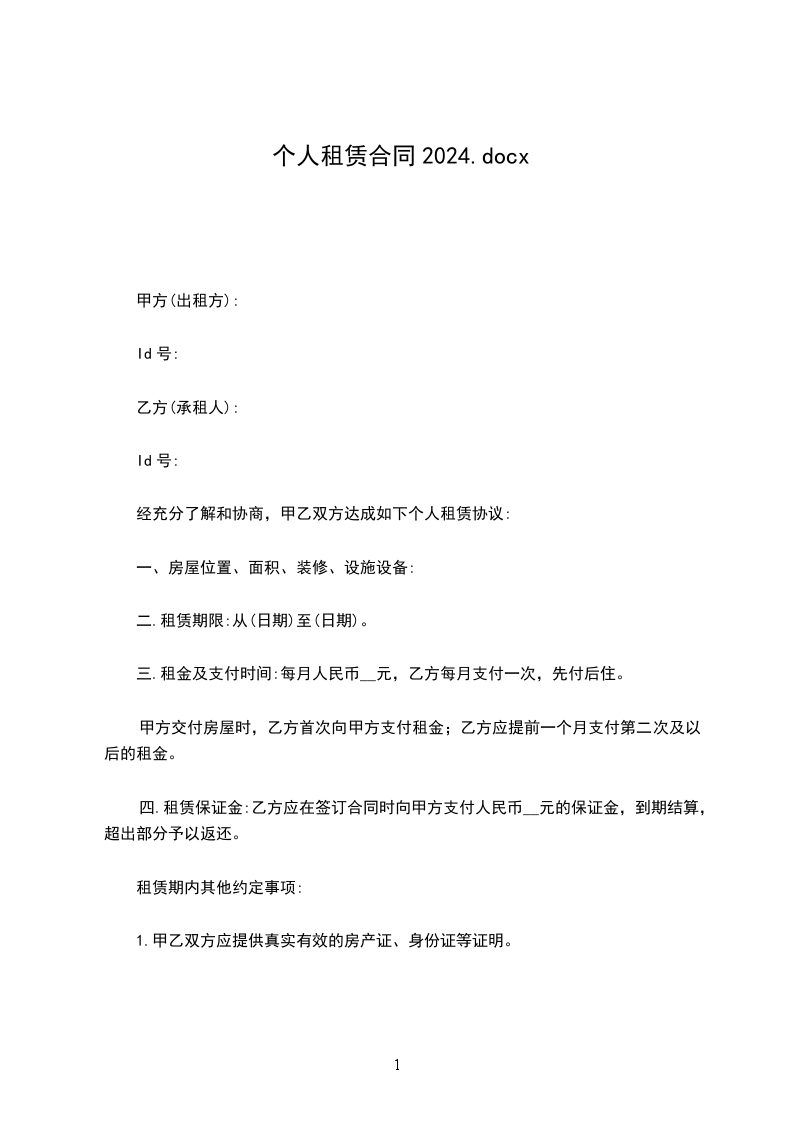 出租方:,以下简称甲方,身份证号:承租方:为明确甲、乙双方的权利义务关系,经双方协商全都,签订本合同。