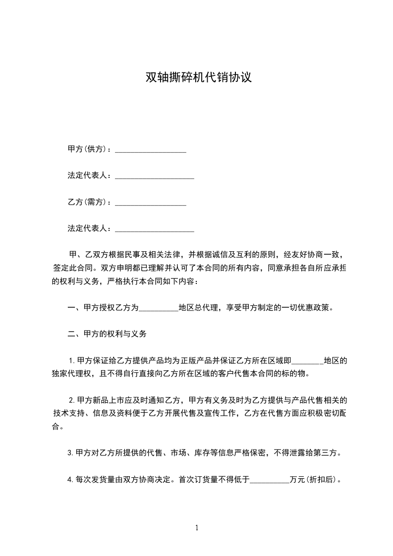 双轴撕碎机定做合同