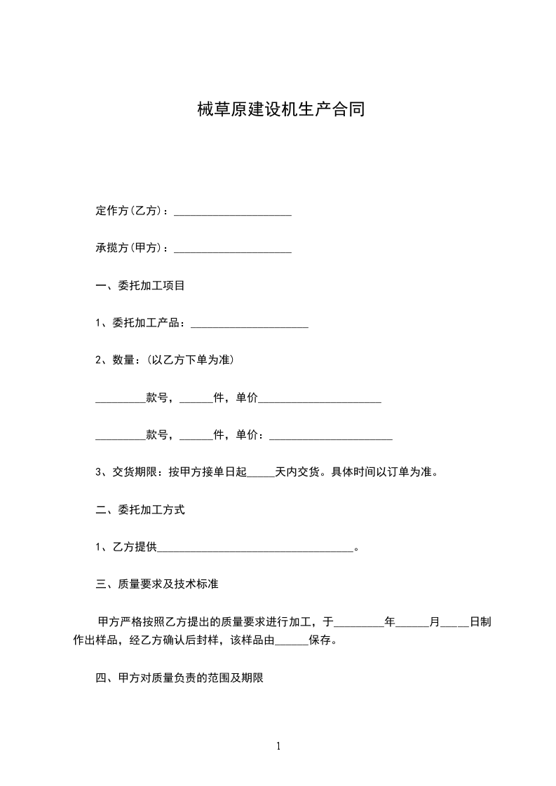 二手械草原建设机维修合同