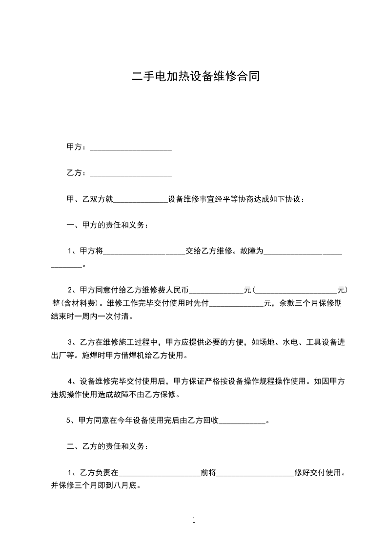 1、甲方将_____________________交给乙方维修。故障为____________________________。