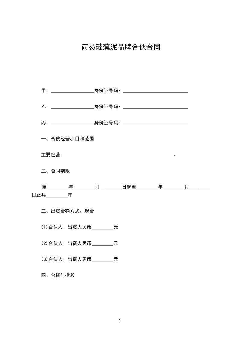 本次合伙出资共计人民币_________元,合伙期间各合伙人的出资为共有财产,不得随意请求分割,如出现亏损合伙人要求撤股,撤股的合伙人须承担亏损金额的_________%,方可撤股。