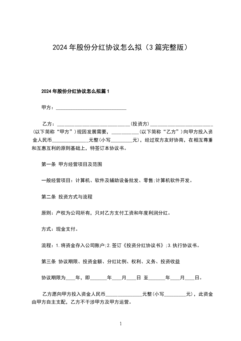 在协议期限内,甲方愿向乙方按每_____支付本金回报_______________元整(小写_________元),三年合计人民币_______________元整(小写_________元),并且甲方以年度利润百分之_____(_____%)向乙方分红。