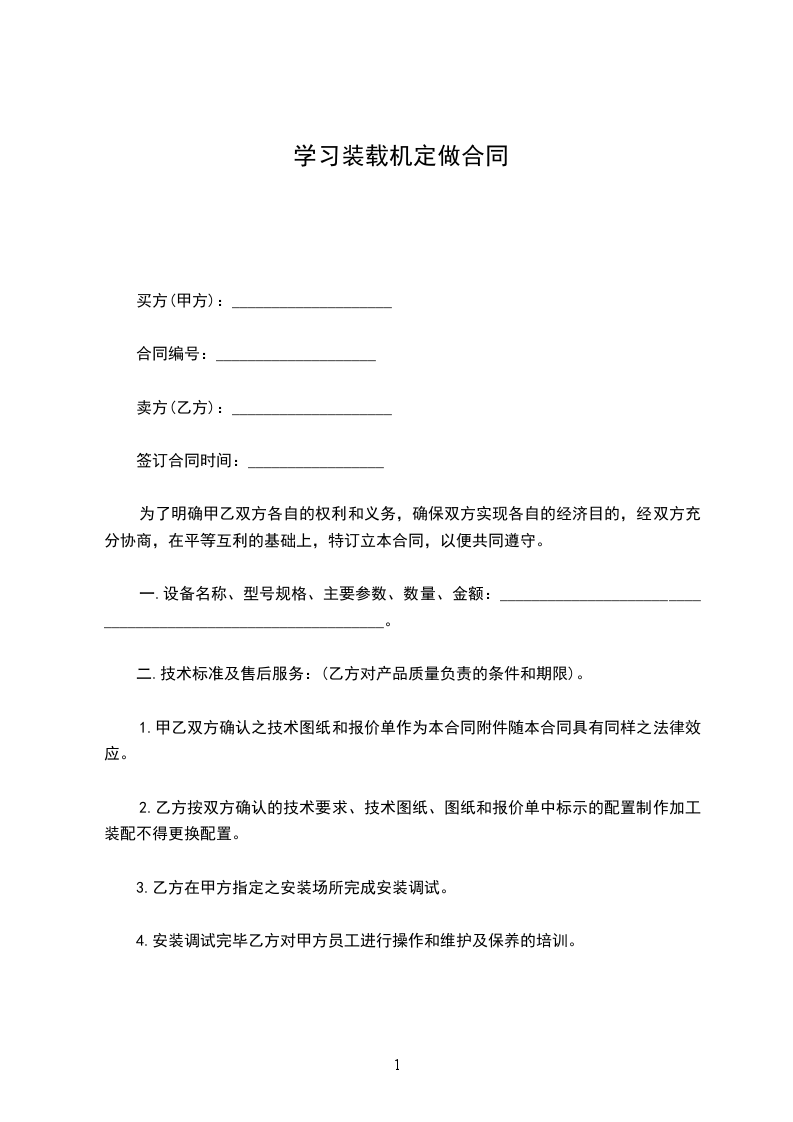 学习装载机定做合同