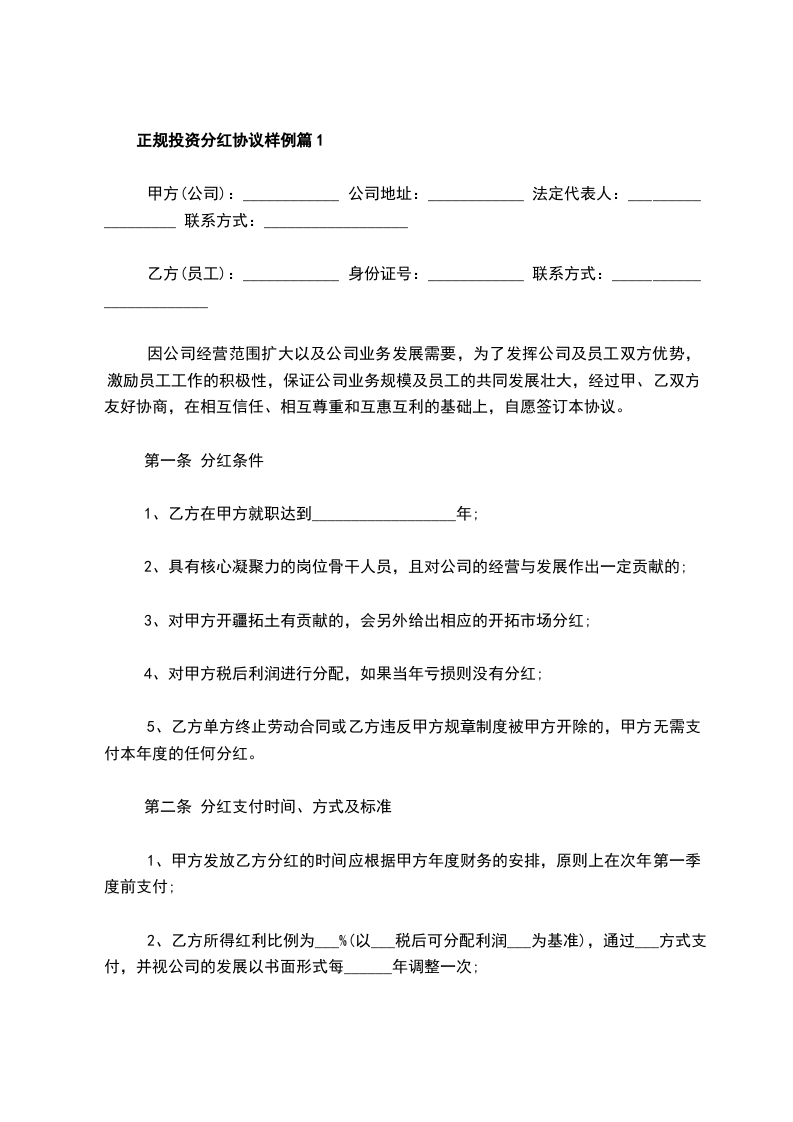 新版投资分红协议样例篇2