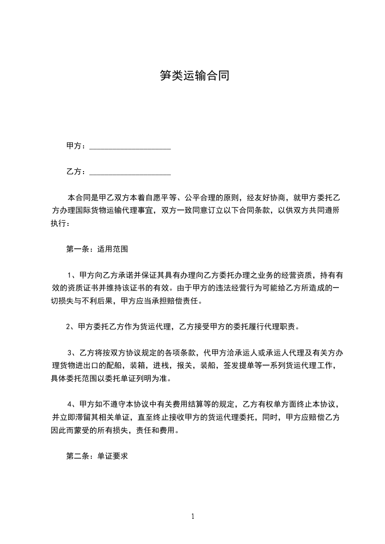笋瓜运输合同