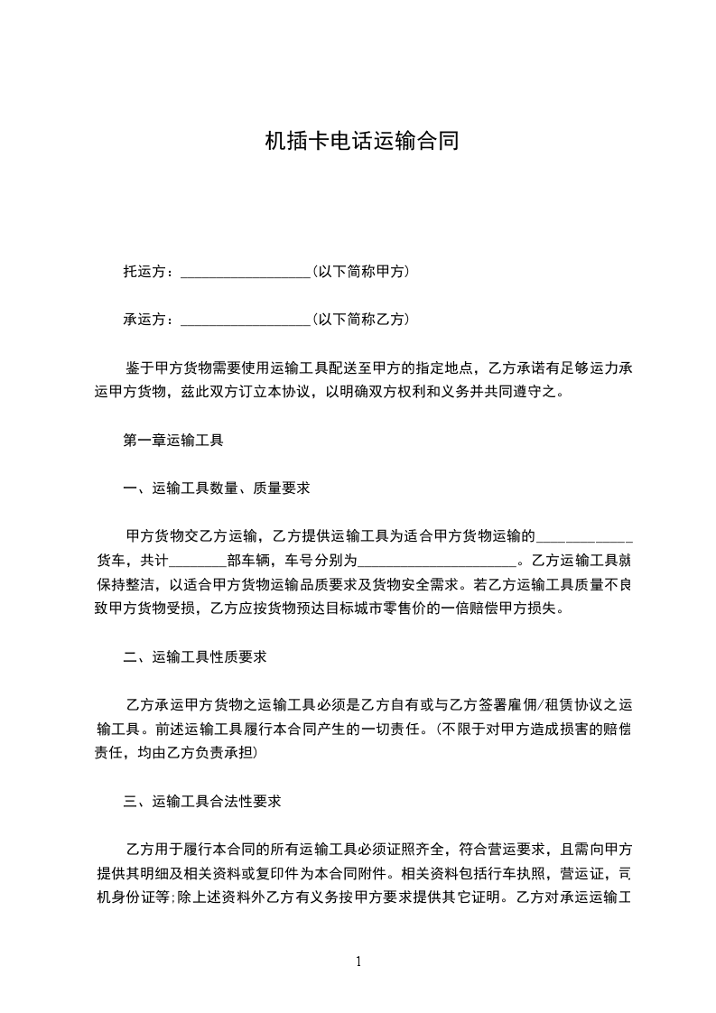 承运方:__________________(以下简称乙方)