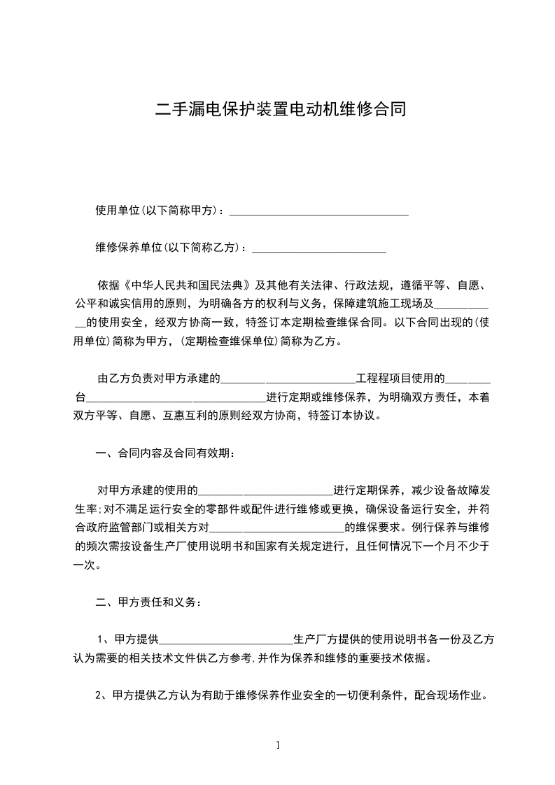 1、甲方向乙方提供机修场地和主要维修需用的设备。