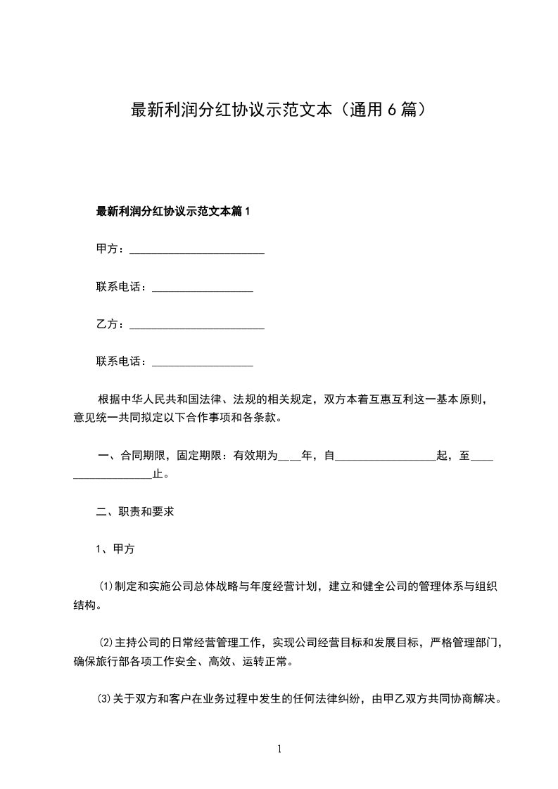 最新利润分红协议示范文本篇1