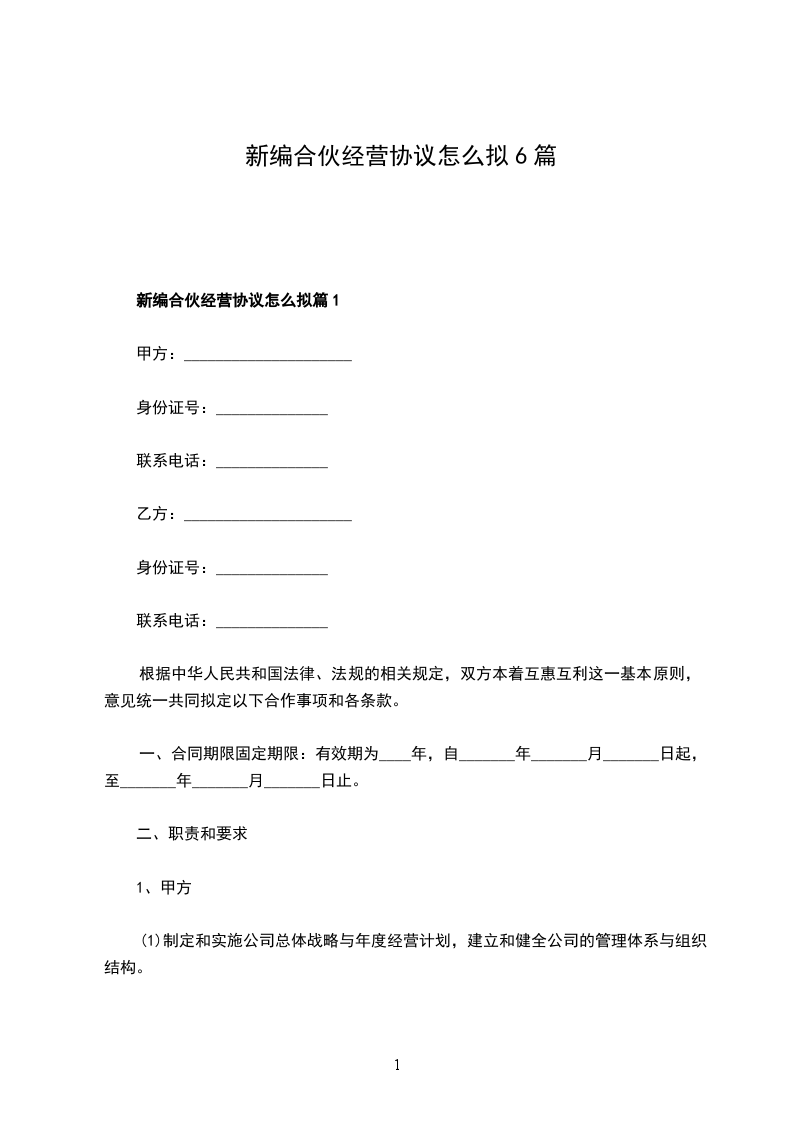 新编合伙经营协议合同书样例篇1