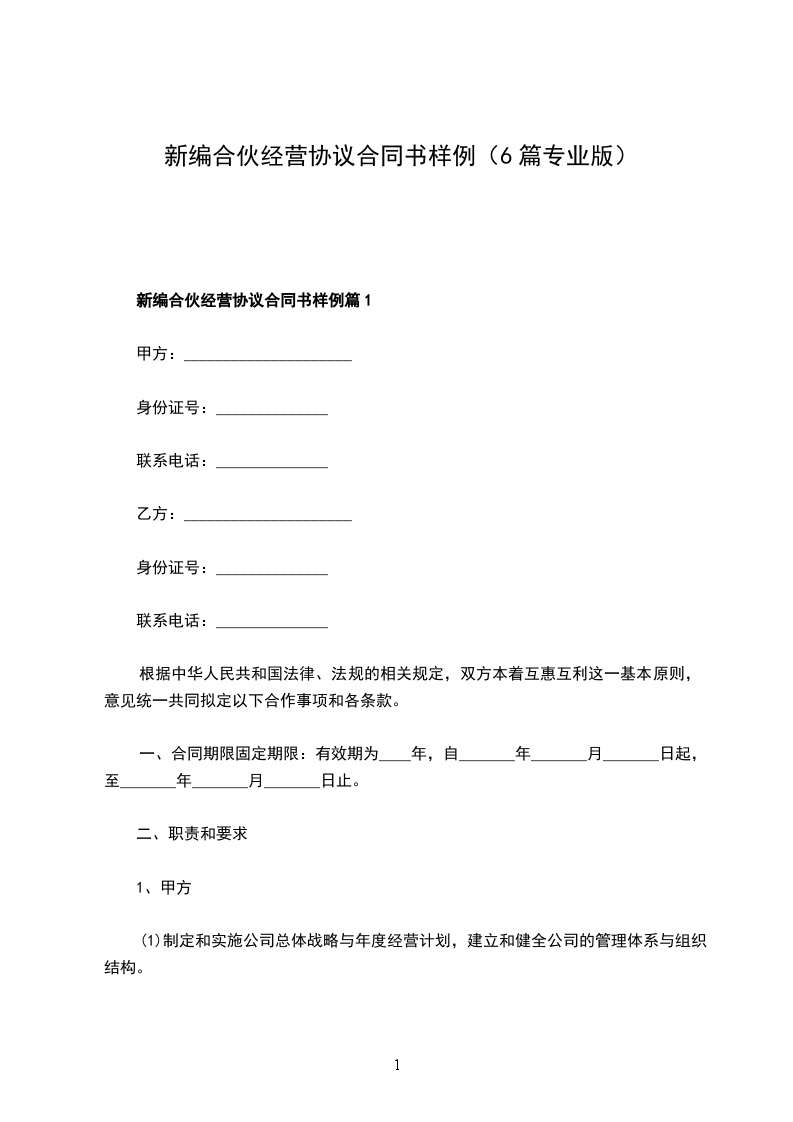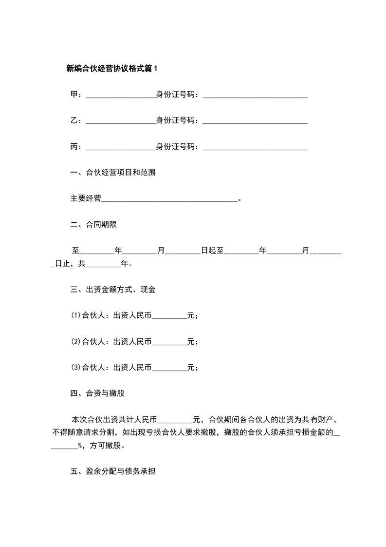 新编合伙经营协议合同书样例篇6