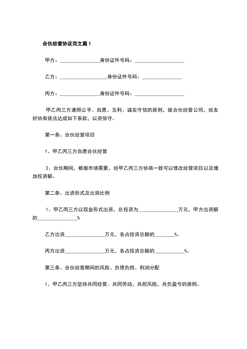 合伙经营项目:__________________________________________