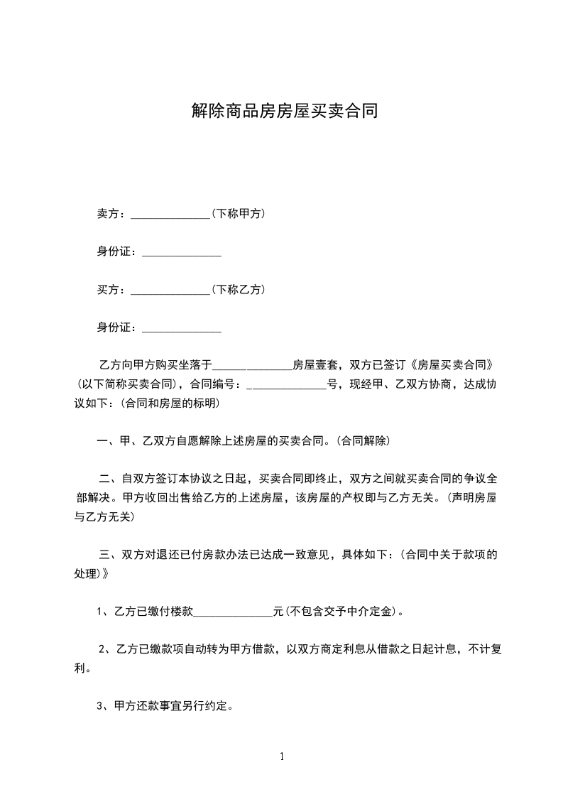 解除房屋买卖合同范文