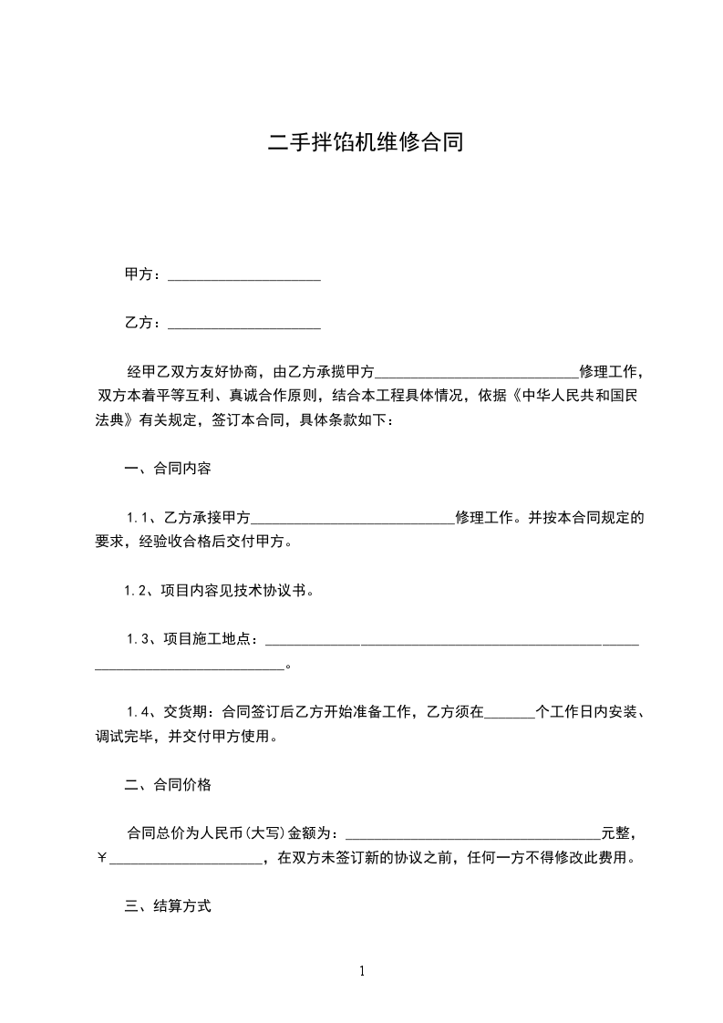 合计(大写)__________________________________元经甲、乙双方协商同意。乙方特委托甲乙维修保养机器。为保证甲乙双方权益,特订立如下协议: