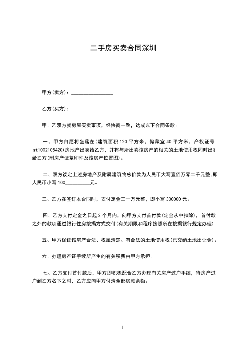 一、甲方自愿将坐落在(建筑面积120平方米,储藏室40平方米,产权证号st1002105420)房地产出卖给乙方,并将与所出卖该房产的相关的土地使用权同时出卖给乙方(附房产证复印件及该房产位置图)。