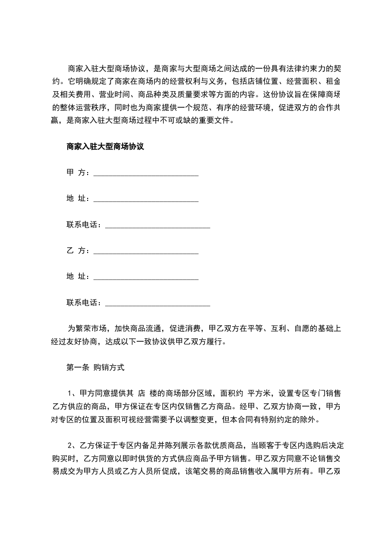 入驻主要是针对大型商场、百货等的商家,在该商场或百货内租下了营业场所并在当中营业。这就叫做入驻主要是针对大型商场、百货等的商家,在该商场或百货内租下了营业场所并在当中营业。下面是_我为你整理的_,盼望对你有用! _ 甲方: 乙方: 经友好协商,甲乙双方就乙方入驻甲方所投资的位 迁安市河西区滨河大街 首钢滨河商场, 并用 经营 (品牌/业态)事宜,达成如下合作意向: