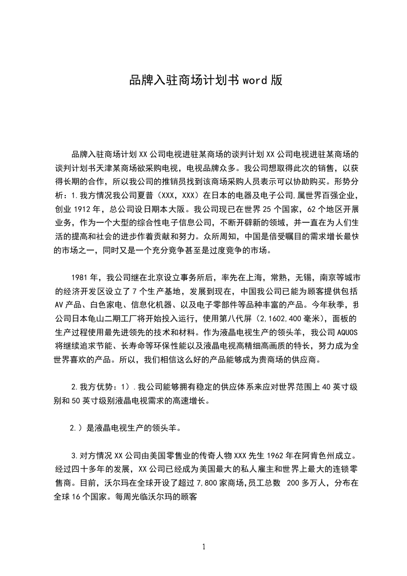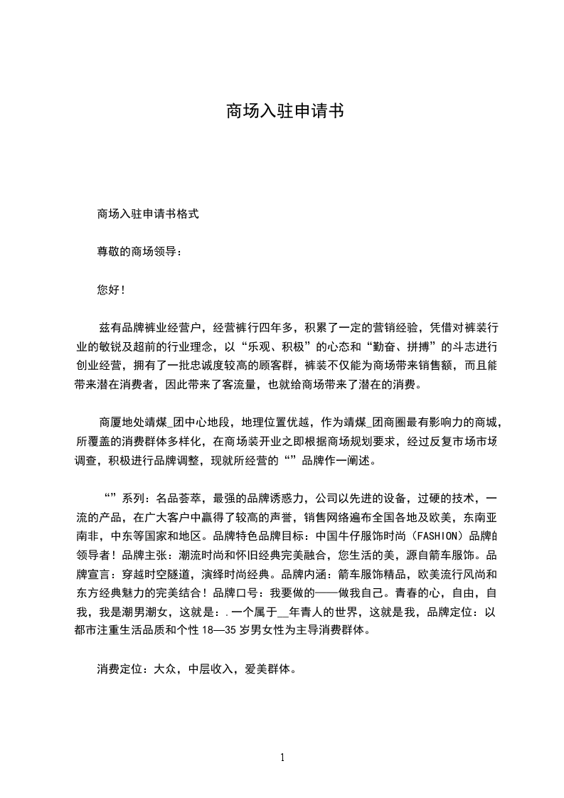 七、本意向书壹式贰份,甲、乙双方各执壹份,自双方授权代表签章后生效。 甲方: 乙方: 授权代表: 授权代表: 日期: 日期: 入驻商场的留意事项 首先要与商场商谈几个方面的事项。品牌知名度,利润,这都是商场比较关怀的东西,或许他们比你更关怀这些;然后是商定装修,装修也是比较麻烦的,品牌方要求按他们的CI统一形象,而商场也不允许进入大肆加工,如地板样式、面积大小、样子都是固定的,这中间的冲突就必需协商解决。 商场还要设立一个什么最低销售额,一般三个月达不到最低销售保障,要么你就自己吃货(自己掏钱买自己的货)要么就整理包袱走人,他们要删柜。商场对在场经营的品牌特别苛刻,假如不是一些利润率达到百分之几百的大的品牌怎么应付得来呢? 再从商场收费方面来分析,商场回扣25到28个点,宣扬费1到2个点,增值税17个点,这样加起来也许要43到47个点,另节假日促销还要扣点。以此算法,假如你从公司拿货3到4折,利润也许是60到70个点,其中有43到47个点会被商场吃掉,那么你的利润最高只有27个点。 这还要最抱负的销售状态,假如遇到商场促销,折扣20个点呢?假如三个月达不到销售保底要自己吃货呢?这样就避开不了亏本。再加上进场费与装修费平均算到每个月,你还有多少利润可得呢?(_最好的开店创业网) 最终奇妙协调各方面的关系,争取更高的利润。一是与商场高层有良好的关系,他们会削减你回扣率(这也是进驻商场的伴侣最常用的手段);二是与品牌方协商,让他们与你共同负担增值税,一般他们负责12%,你个人负责5%;三就是代理一些知名的品牌、利润高的品牌。进驻商场的品牌许多是为了提升知名度的,一般是品牌方自行设立的专柜,他们的利润可以自行掌握。个人代理进驻商场还是需要谨慎考虑,二线品牌进驻商场也需要酌情思考。