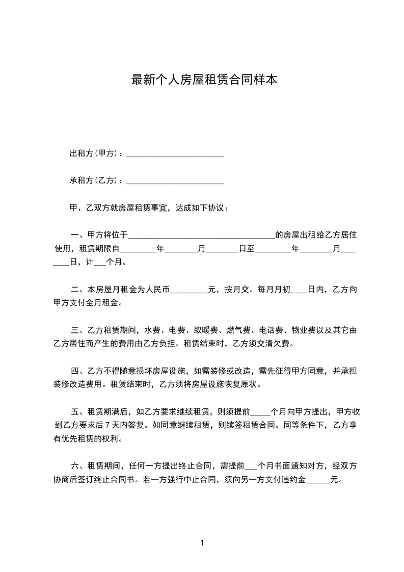 根据《中华人民共和国》及有关规定,为明确甲、乙双方的权利义务关系,经双方协商一致,签订本个人房屋出租协议书。