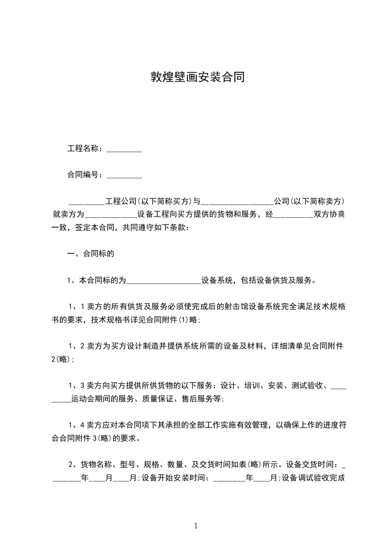 1、本合同标的为___________________设备系统,包括设备供货及服务。