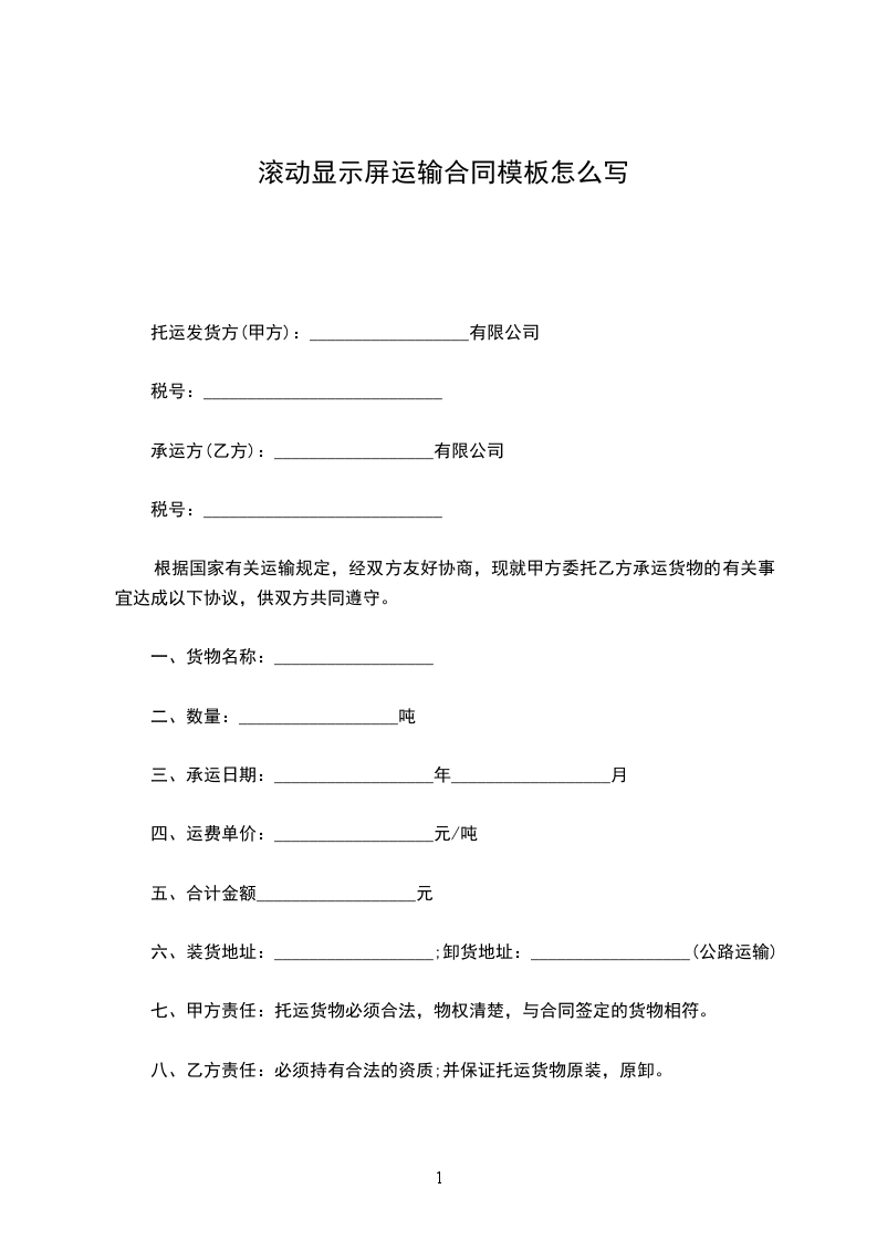 承运方(乙方):__________________有限公司
