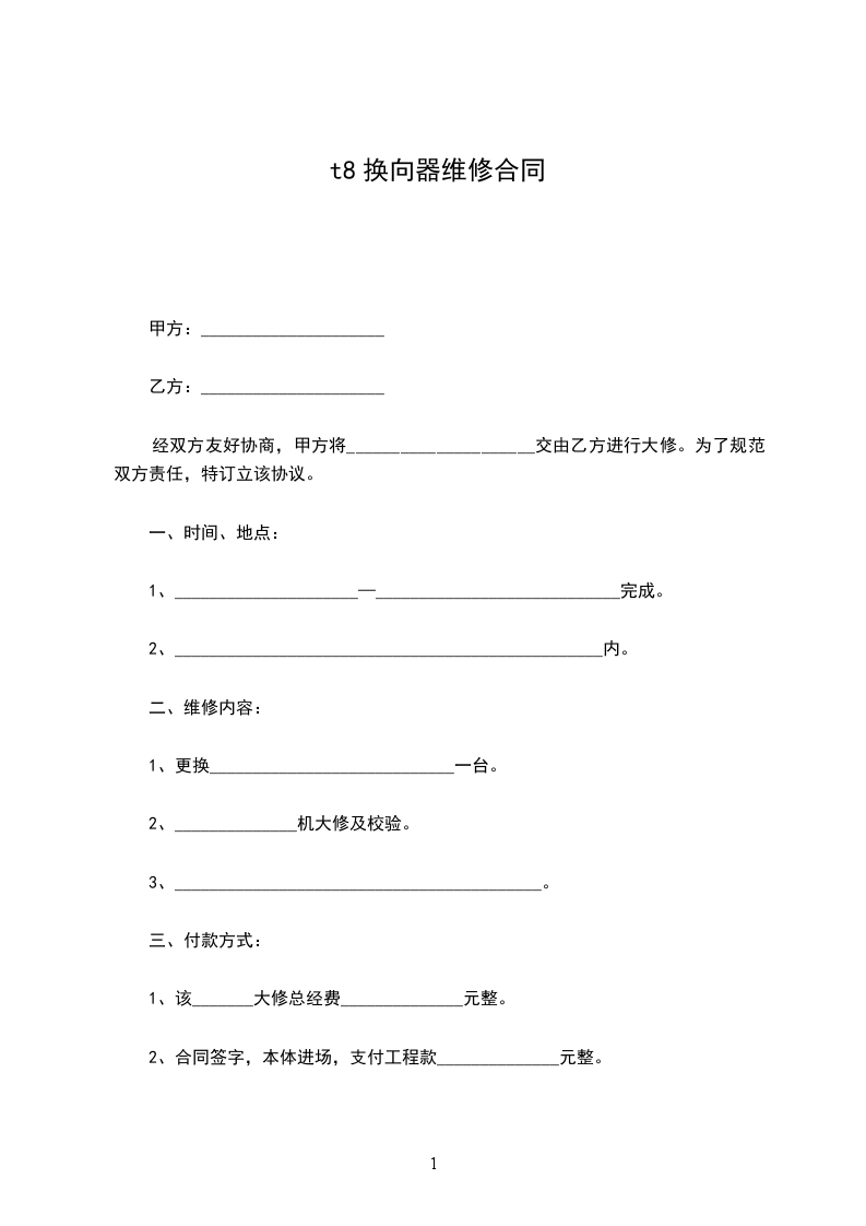 t8转向器维修合同