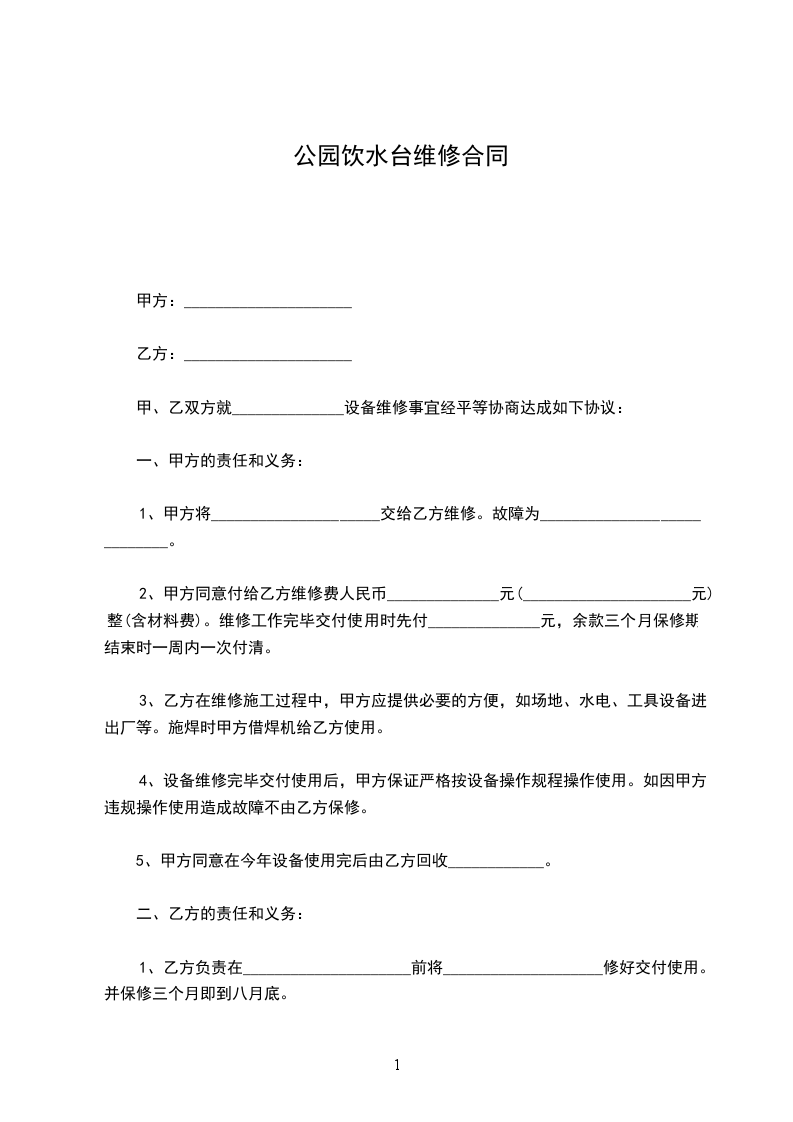 1、甲方将_____________________交给乙方维修。故障为____________________________。