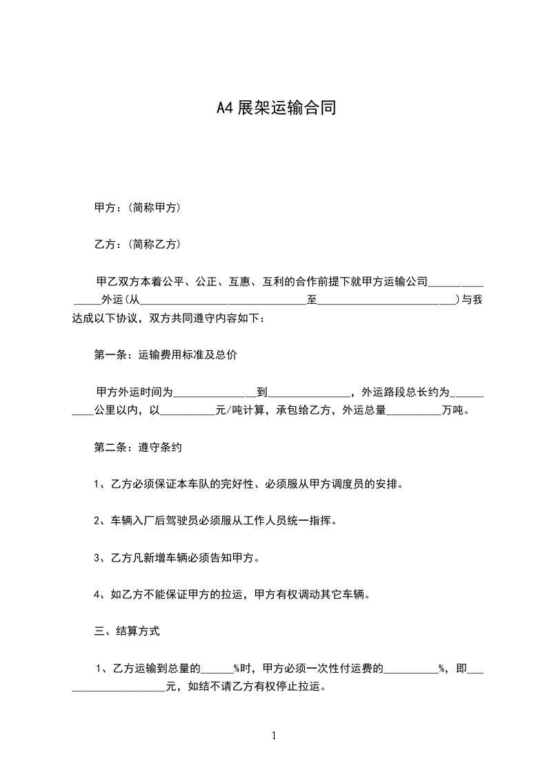 甲乙双方本着公平、公正、互惠、互利的合作前提下就甲方运输公司_______________外运(从______________________________至_________________________)与我达成以下协议,双方共同遵守内容如下: