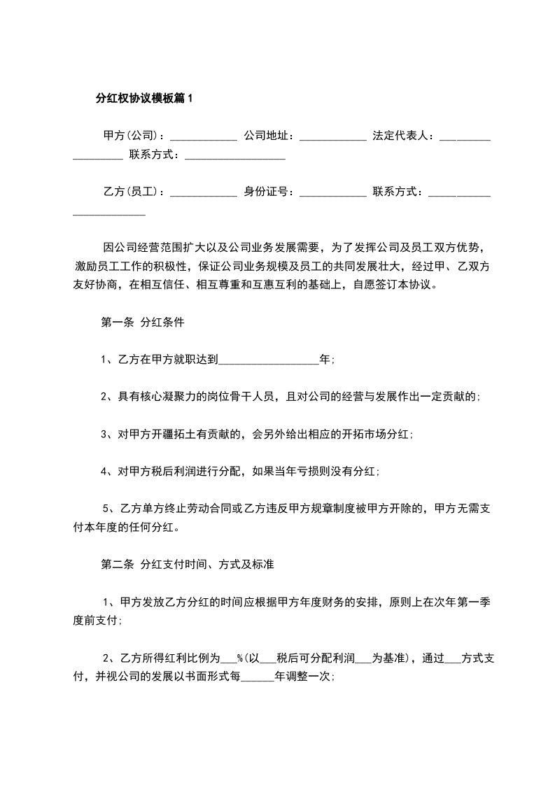 分红权协议示范文本篇1