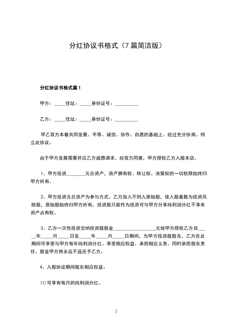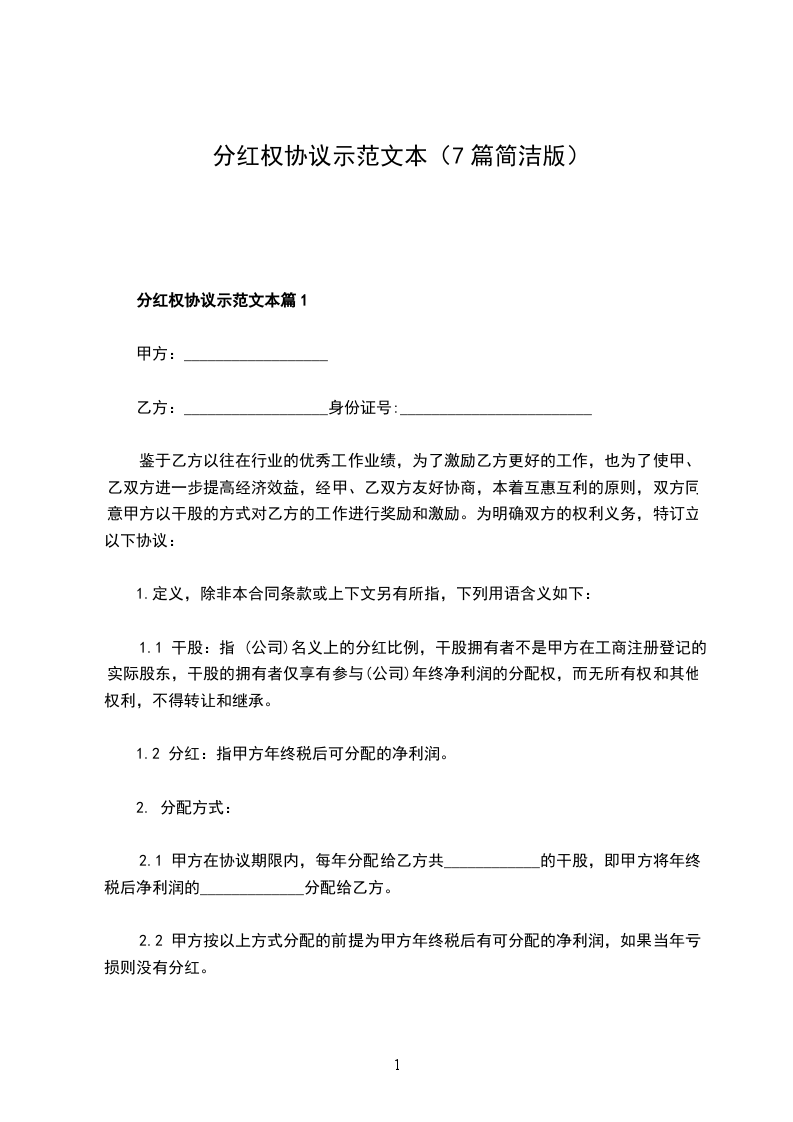 分红权协议示范文本篇7