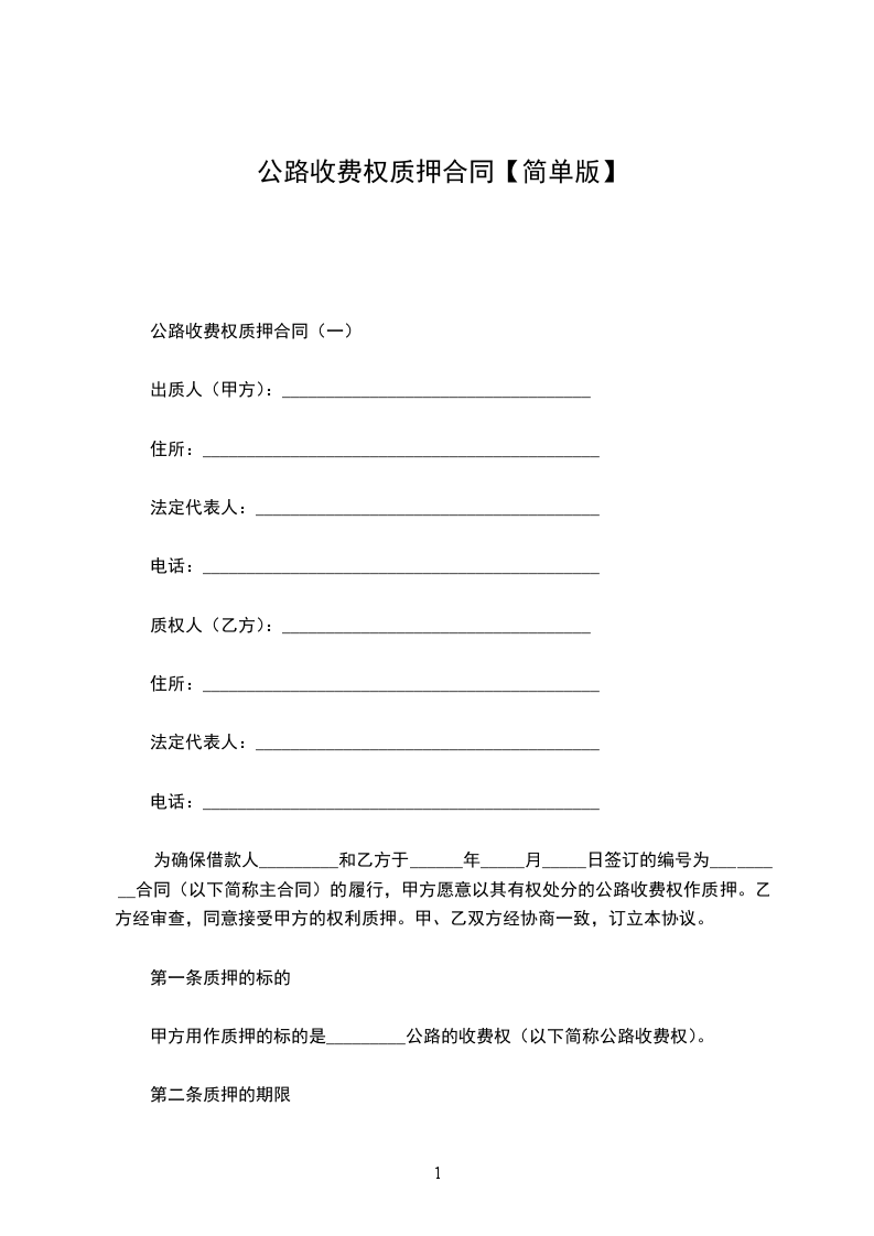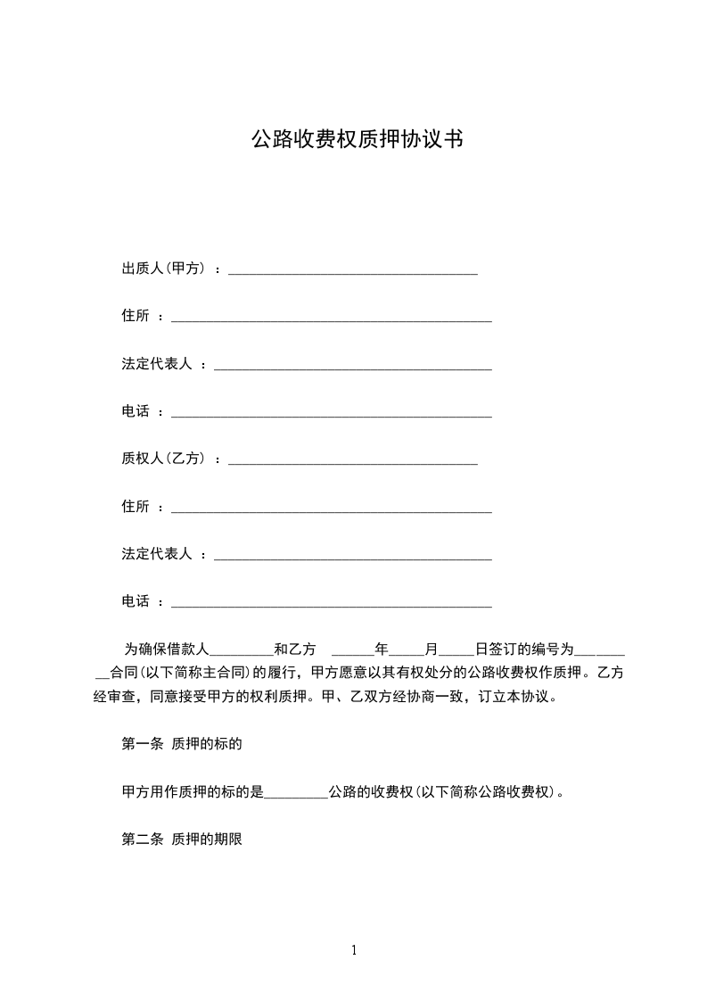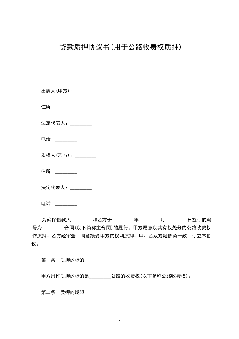 第二条出质人与质权人协商一致以其公路的_____权作为借款合同的质押担保。
