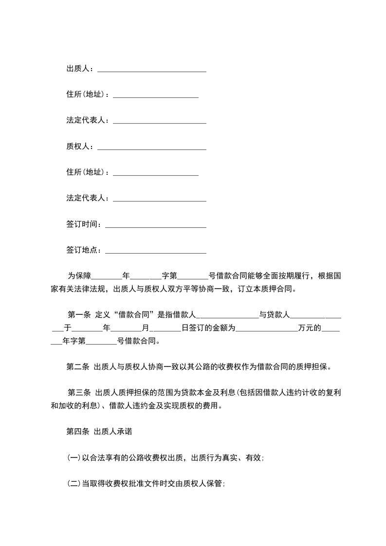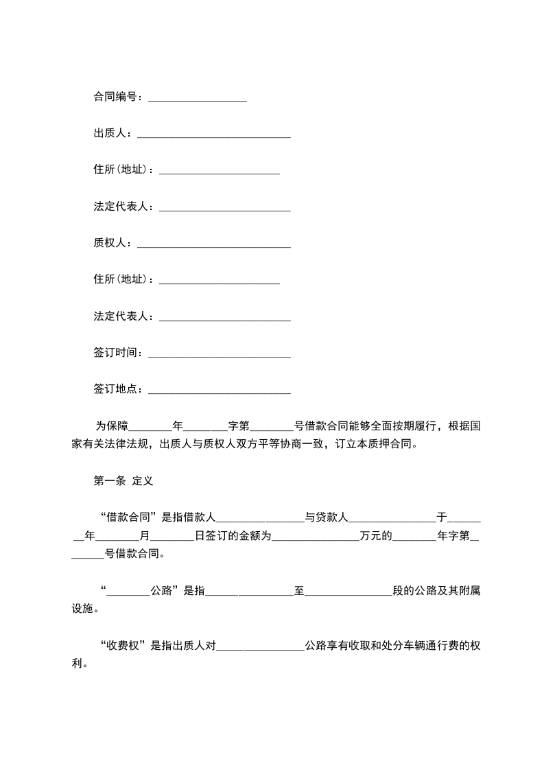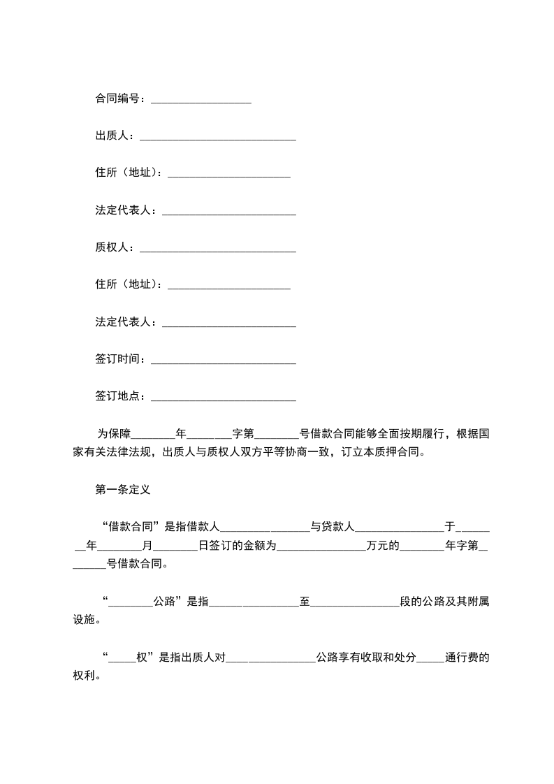 “_____权质押”是指出质人将其享有的________________公路的_____权质押给质权人作为借款人借款的担保。