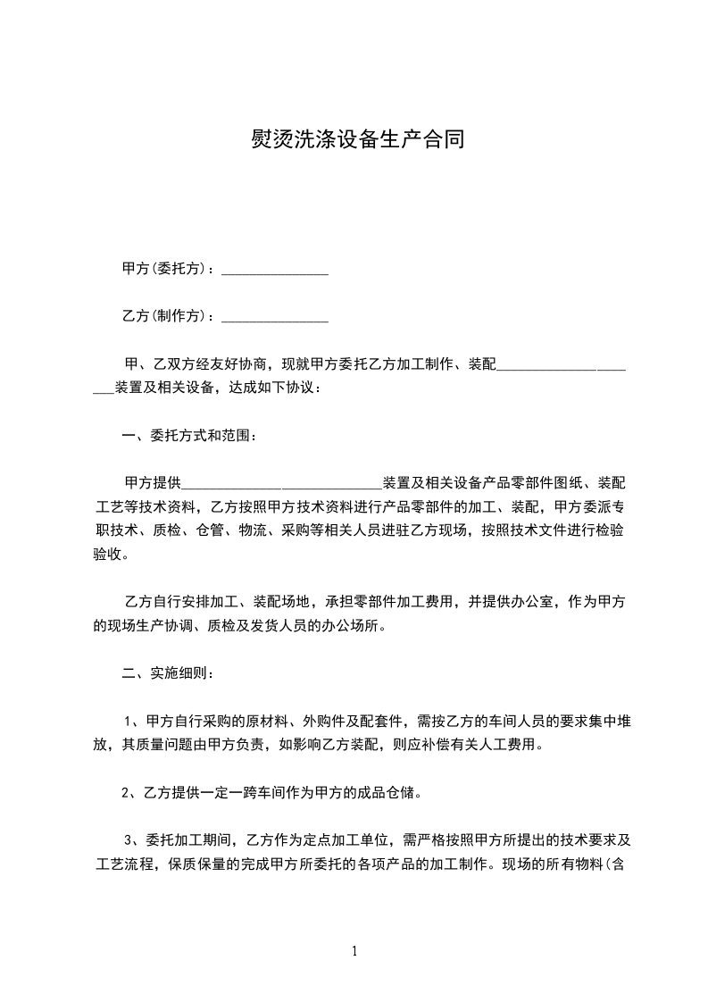 甲、乙双方经友好协商,现就甲方委托乙方加工制作、装配_____________________装置及相关设备,达成如下协议: