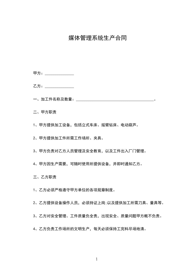 2、乙方提供设备操作人员,必须持证上岗;以及提供加工所需刀具、量具等。