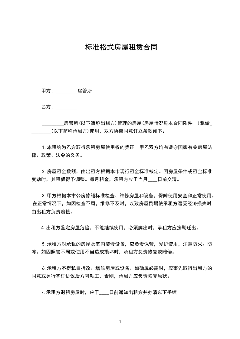 _________房管所(以下简称出租方)管理的房屋(房屋情况见本合同附件一)租给_________(以下简称承租方)使用,双方协商同意订立条款如下: