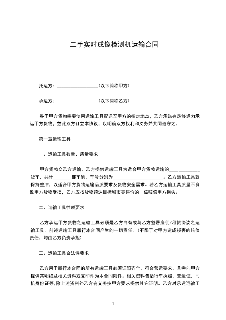 甲方货物交乙方运输,乙方提供运输工具为适合甲方货物运输的_____________货车,共计________部车辆,车号分别为______________________。乙方运输工具就保持整洁,以适合甲方货物运输品质要求及货物安全需求。若乙方运输工具质量不良致甲方货物受损,乙方应按货物预达目标城市零售价的一倍赔偿甲方损失。