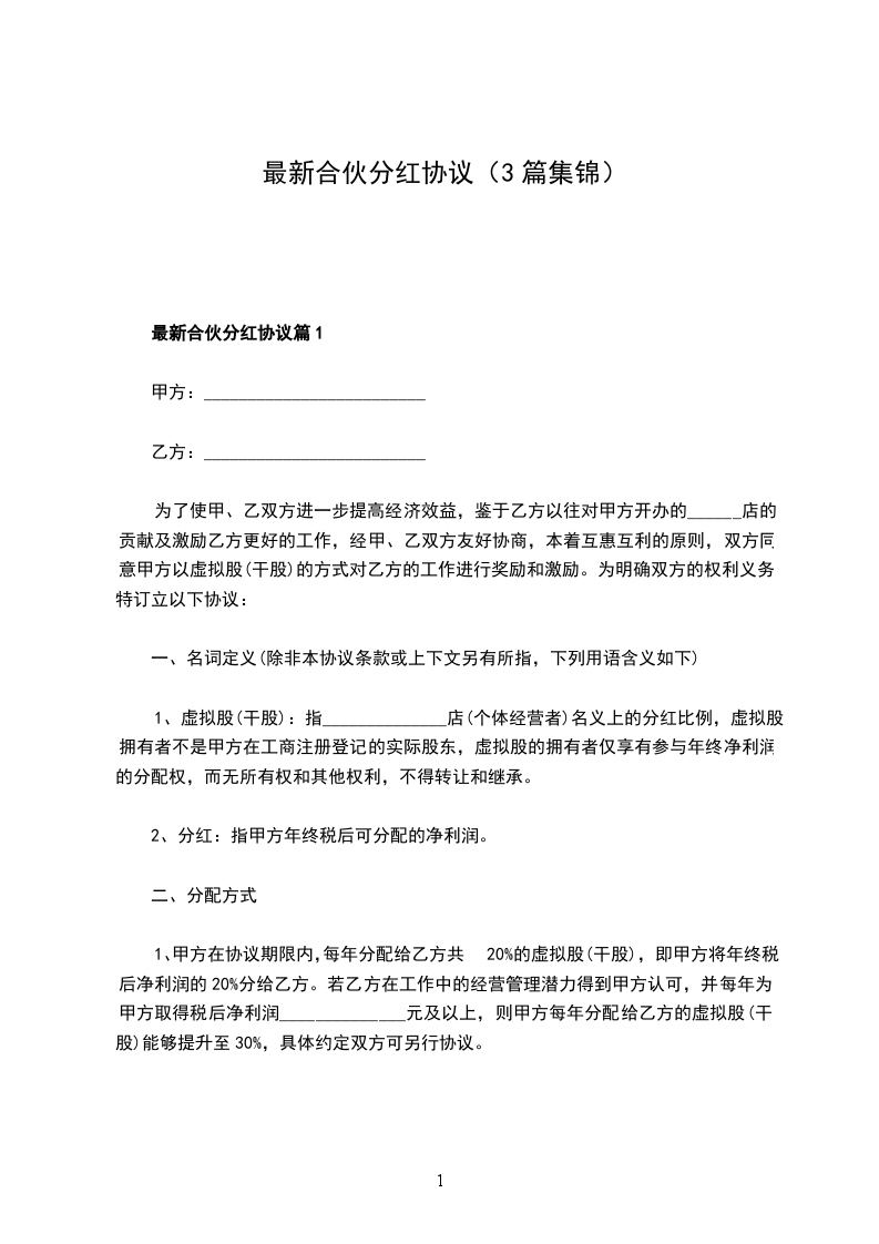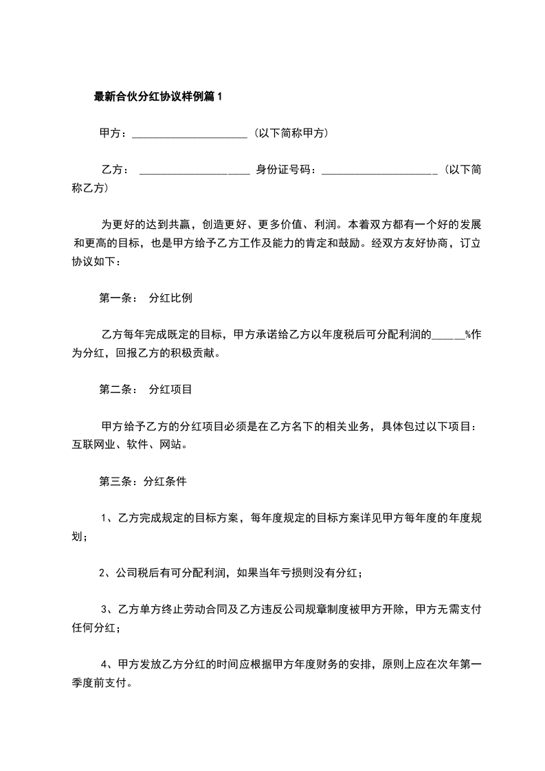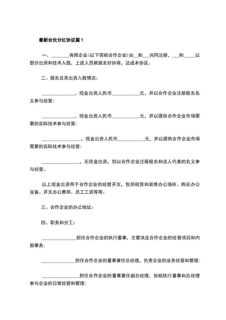 二、分红协议期限 从____________起到__________________止。分红的依据及计算办法