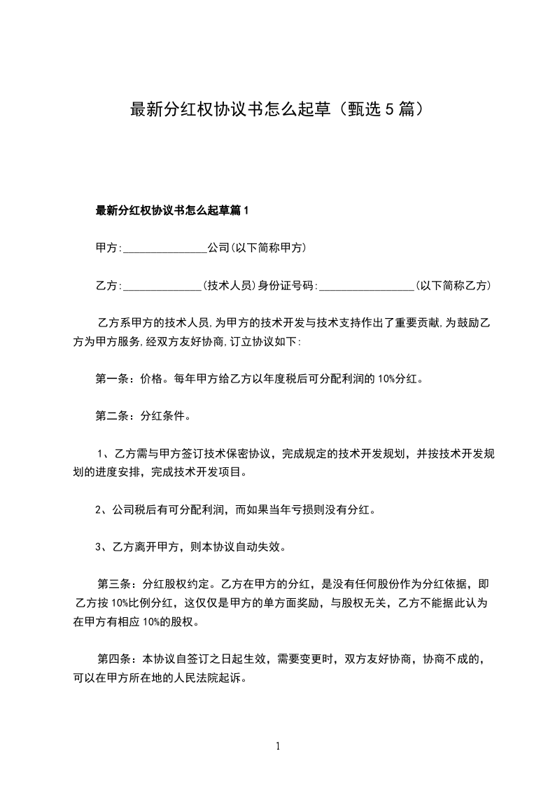最新分红权协议怎么起草篇1