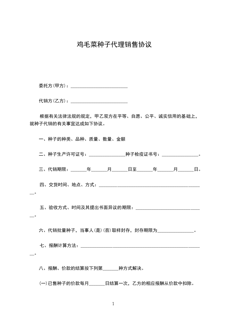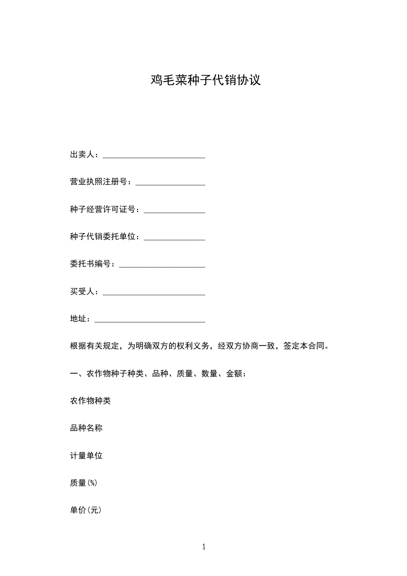 鸡毛菜种苗运输合同