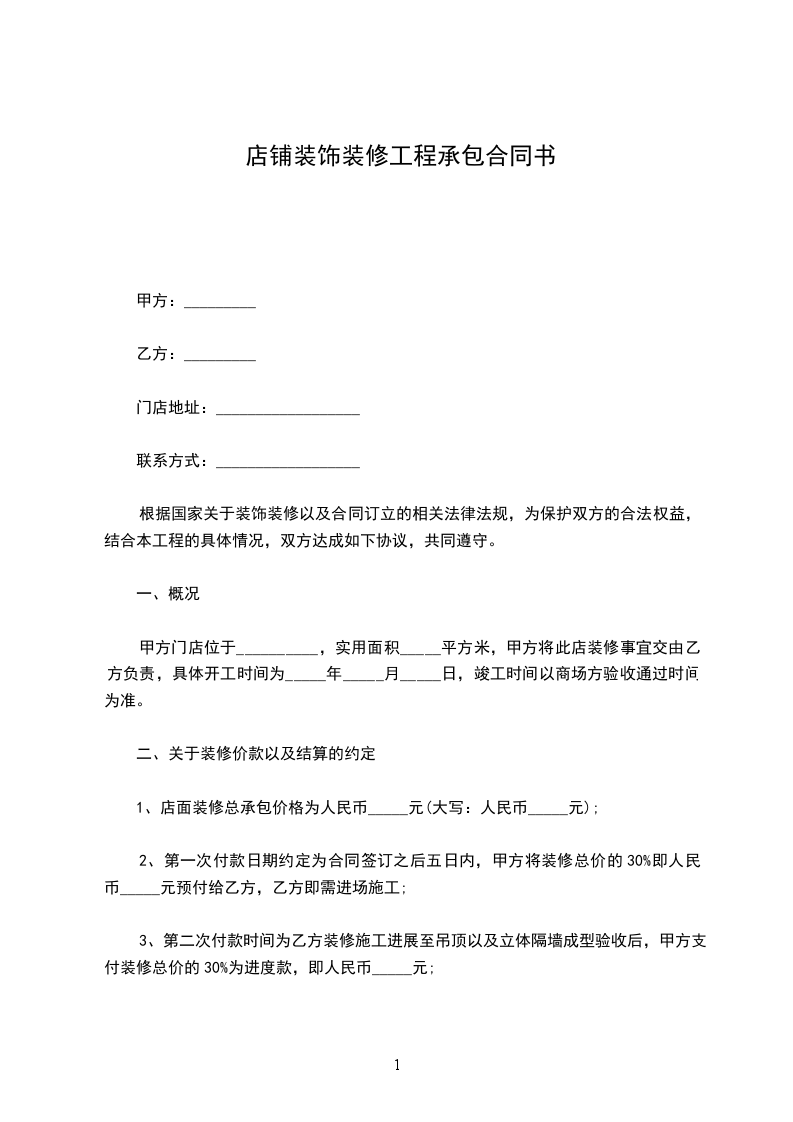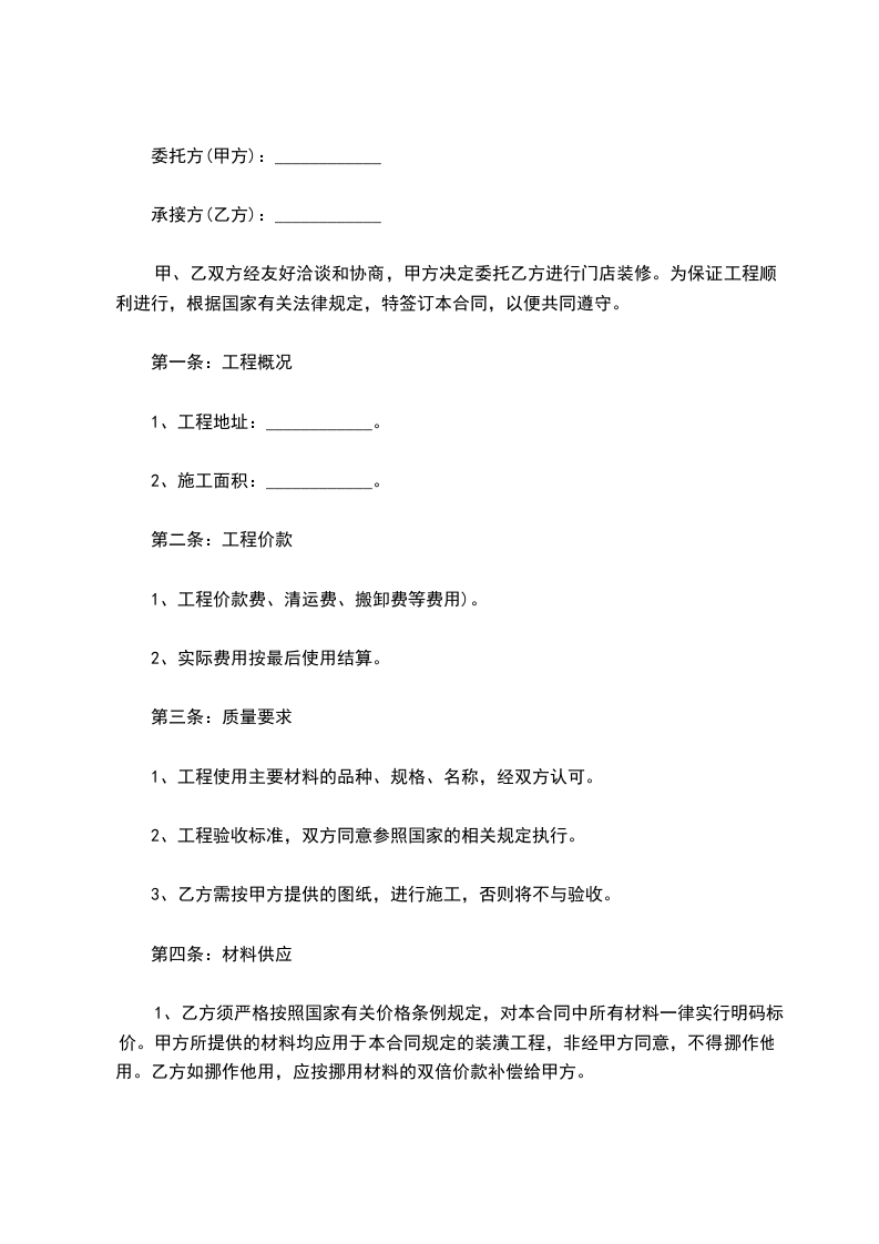 依照《_____》及相关法律、法规的规定,结合商铺装饰工程施工的特点,遵循平等、自愿、公平和诚实信用的原则,双方经友好洽谈和协商,就双方的商铺装饰工程的有关事宜,达成如下协议: