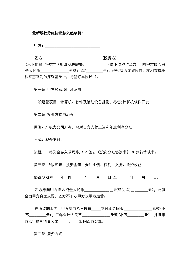 最新股权分红协议怎么起草篇1
