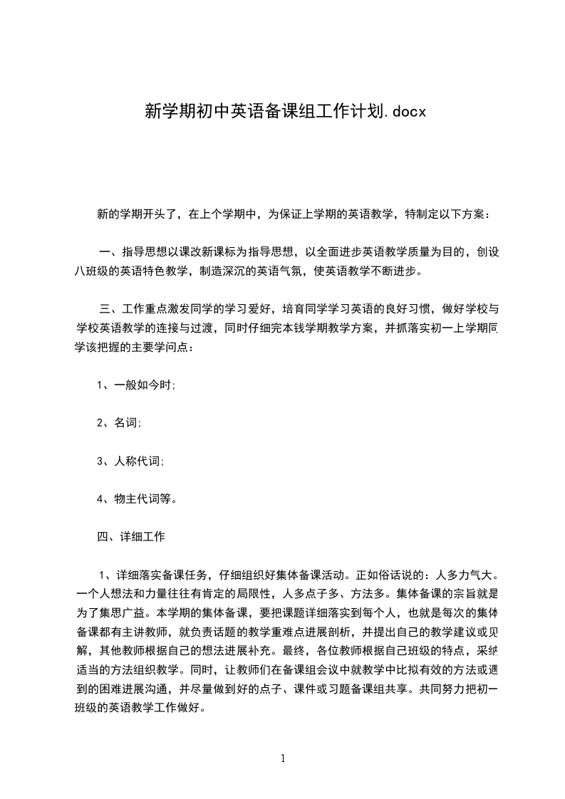 新的学期开头了,在上个学期中,为保证上学期的英语教学,特制定以下方案: