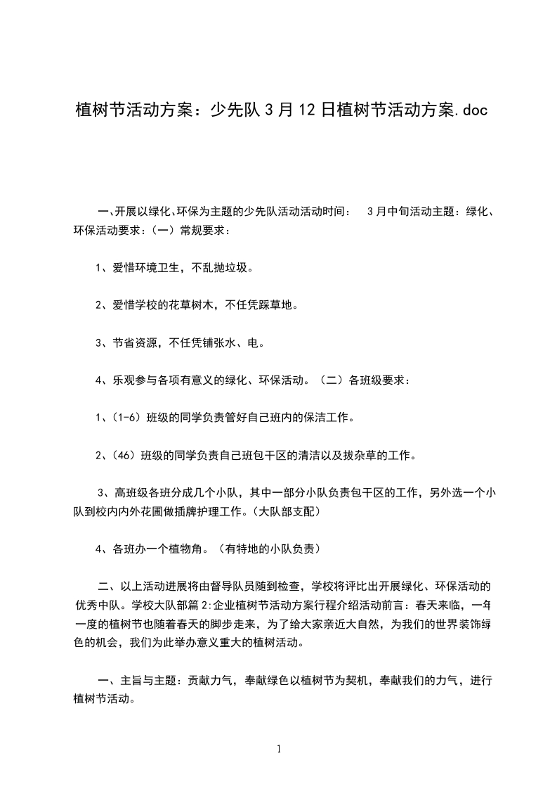一、活动目的:以三月份植树节为契机,在全校少先队员中开展形式多样的护绿行动和植物种植实践体验认养活动,做到人人参与,宣传与实际行动相结合,从而令学生在活动中体验成功的喜悦,增加对植物生长的了解,增强环保意识,生态意识,以达到为班级、学校、社会增添绿色,净化、美化环境的目的。