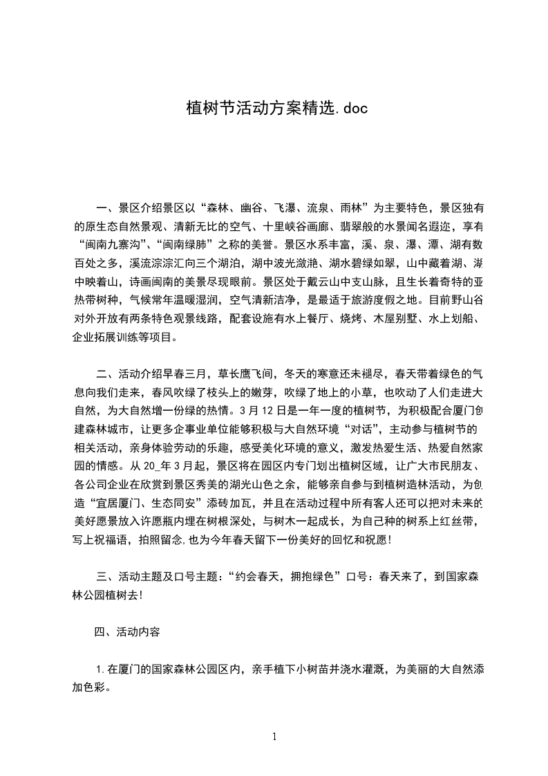 二、活动介绍早春三月,草长鹰飞间,冬天的寒意还未褪尽,春天带着绿色的气息向我们走来,春风吹绿了枝头上的嫩芽,吹绿了地上的小草,也吹动了人们走进大自然,为大自然增一份绿的热情。3月12日是一年一度的植树节,为积极配合厦门创建森林城市,让更多企事业单位能够积极与大自然环境“对话”,主动参与植树节的相关活动,亲身体验劳动的乐趣,感受美化环境的意义,激发热爱生活、热爱自然家园的情感。从20_年3月起,景区将在园区内专门划出植树区域,让广大市民朋友、各公司企业在欣赏到景区秀美的湖光山色之余,能够亲自参与到植树造林活动,为创造“宜居厦门、生态同安”添砖加瓦,并且在活动过程中所有客人还可以把对未来的美好愿景放入许愿瓶内埋在树根深处,与树木一起成长,为自己种的树系上红丝带,写上祝福语,拍照留念,也为今年春天留下一份美好的回忆和祝愿!