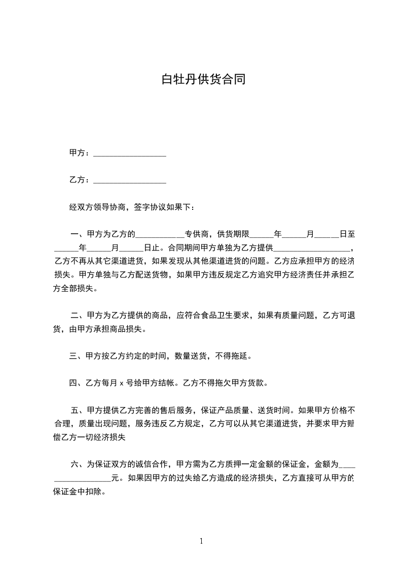 二、乙方向甲方提供如下商品,________________________________________________________,具体定量按乙方要求确定。