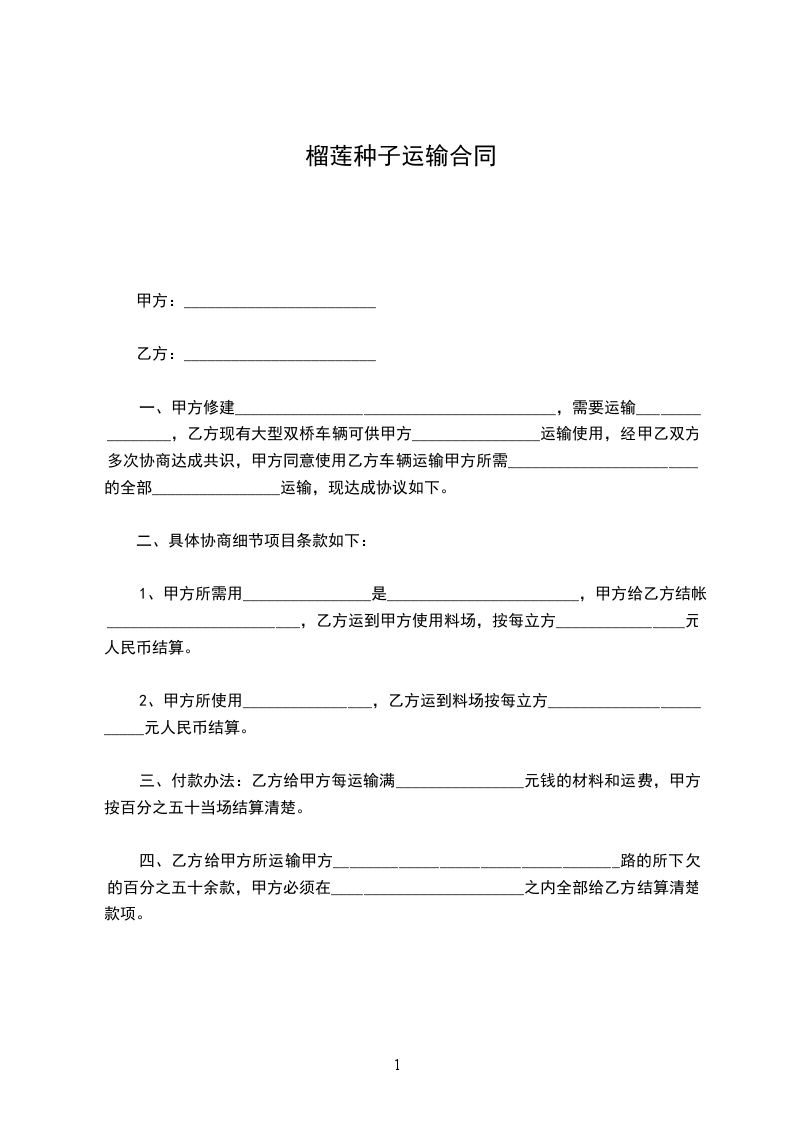 三、付款办法:乙方给甲方每运输满________________元钱的材料和运费,甲方按百分之五十当场结算清楚。